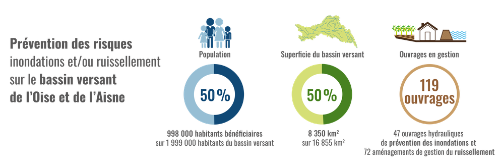 Elle est compétente sur l'ensemble du bassin versant de l'Oise, de l'Aisne et de leurs affluents, soit 16 934 km2. Elle exerce des compétences à la carte sur les problématiques de risques naturels (inondation par débordement de cours d'eau, ruissellement et coulées de boue) et de qualité des milieux aquatiques. Enfin, elle assure une coordination de l'ensemble des acteurs agissant sur le grand cycle de l'eau et rend des avis sur leurs projets.
