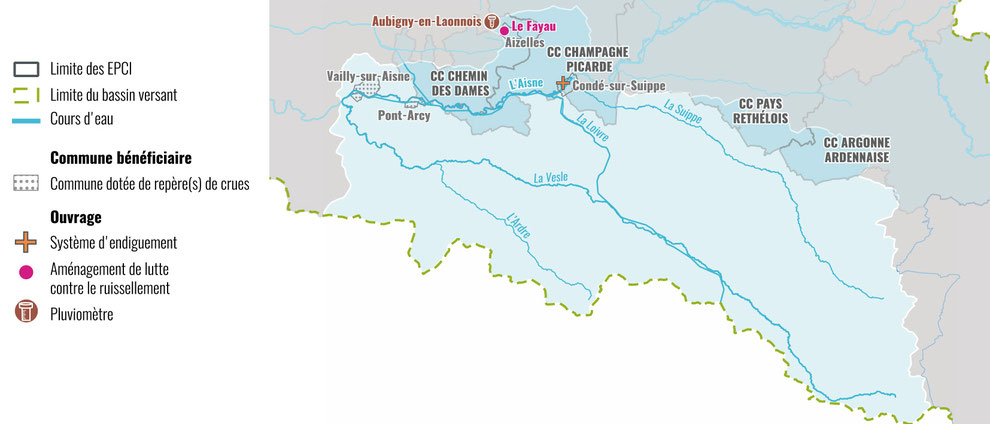 L'Entente conduit des actions déclinées par territoires en fonction des compétences transférées. Il s'agit d'actions qui répondent à des problématiques locales comme la création d'ouvrages de protection contre les débordements de cours d'eau, les aménagements de gestion du ruissellement (coulées de boue), l'aide aux travaux sur les bâtiments pour limiter les dommages d'inondations (Inond'action), etc.
