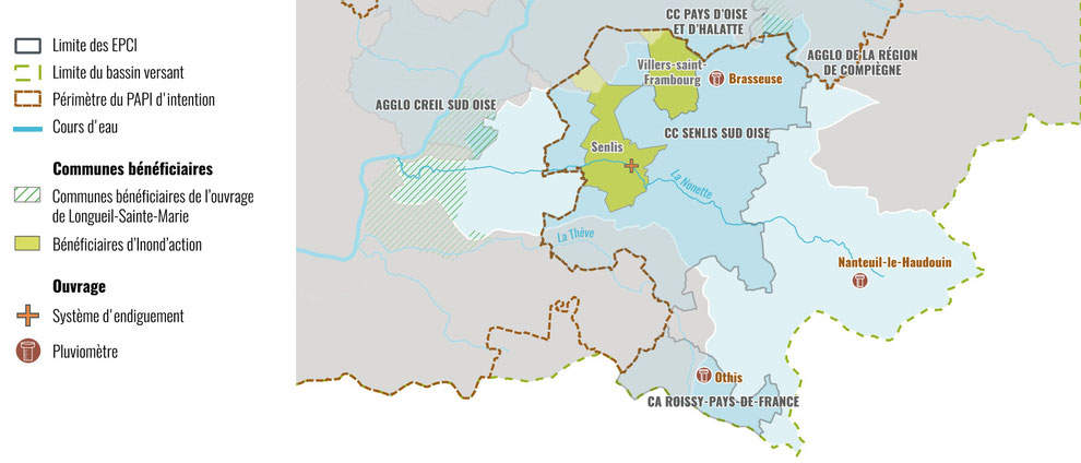 L'Entente conduit des actions déclinées par territoires en fonction des compétences transférées. Il s'agit d'actions qui répondent à des problématiques locales comme la création d'ouvrages de protection contre les débordements de cours d'eau, les aménagements de gestion du ruissellement (coulées de boue), l'aide aux travaux sur les bâtiments pour limiter les dommages d'inondations (Inond'action), etc.